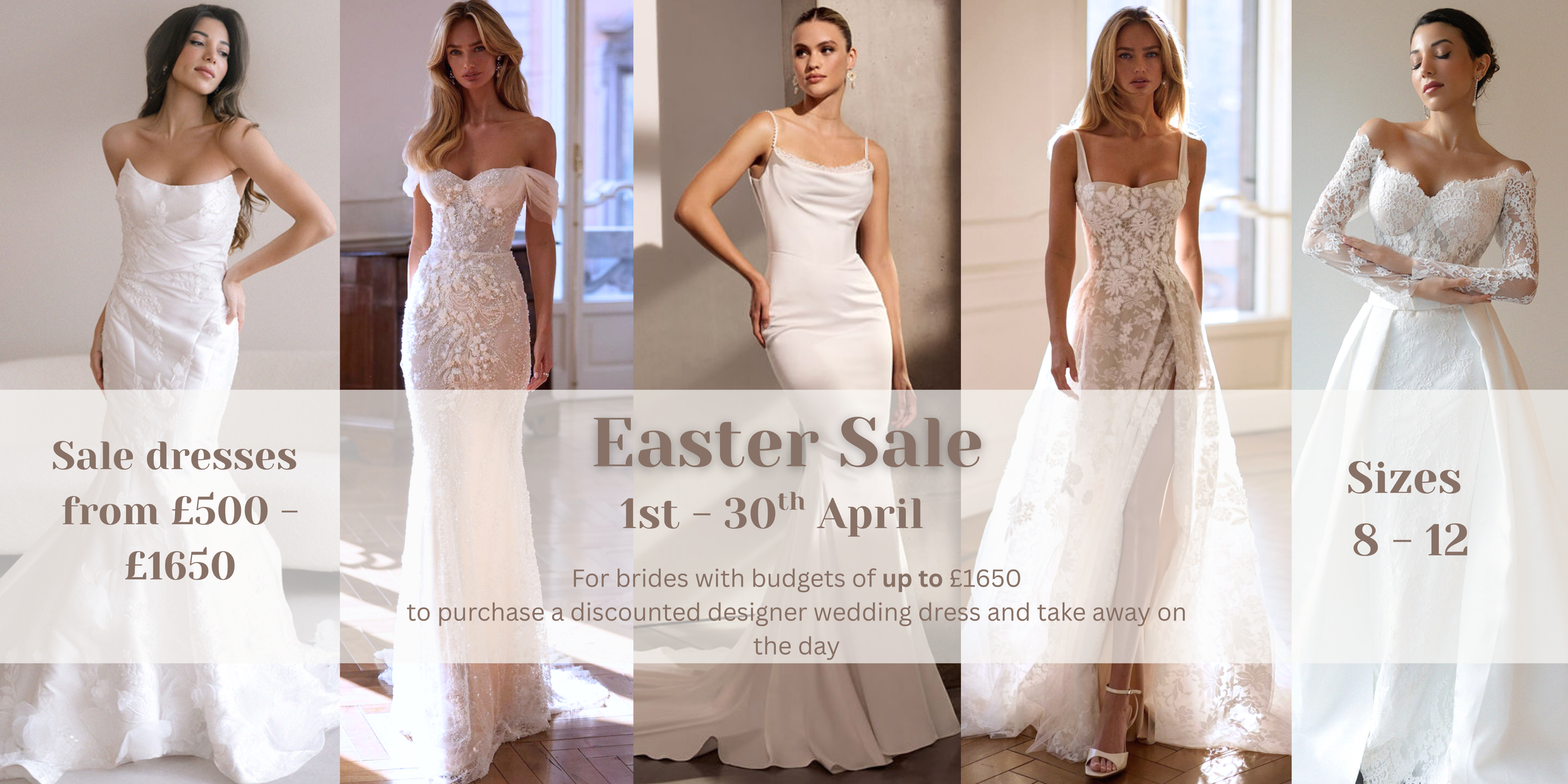 Click on our dresses below, each collection has their own price guide & sample sizes listed. If you need a dress within less than 6 months please talk to us straight away & see our off the peg selection